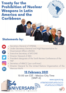 On February 15, OPANAL (Organization for the Prohibition of Nuclear Weapons in Latin America and the Caribbean), together with its Member States, organized a webinar in celebration of the 54th anniversary of the Treaty of Tlatelolco (Treaty for the Prohibition of Nuclear Weapons in America Latin America and the Caribbean).